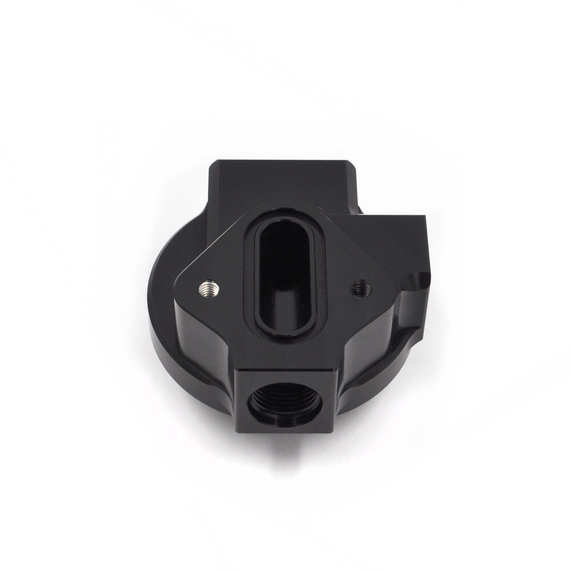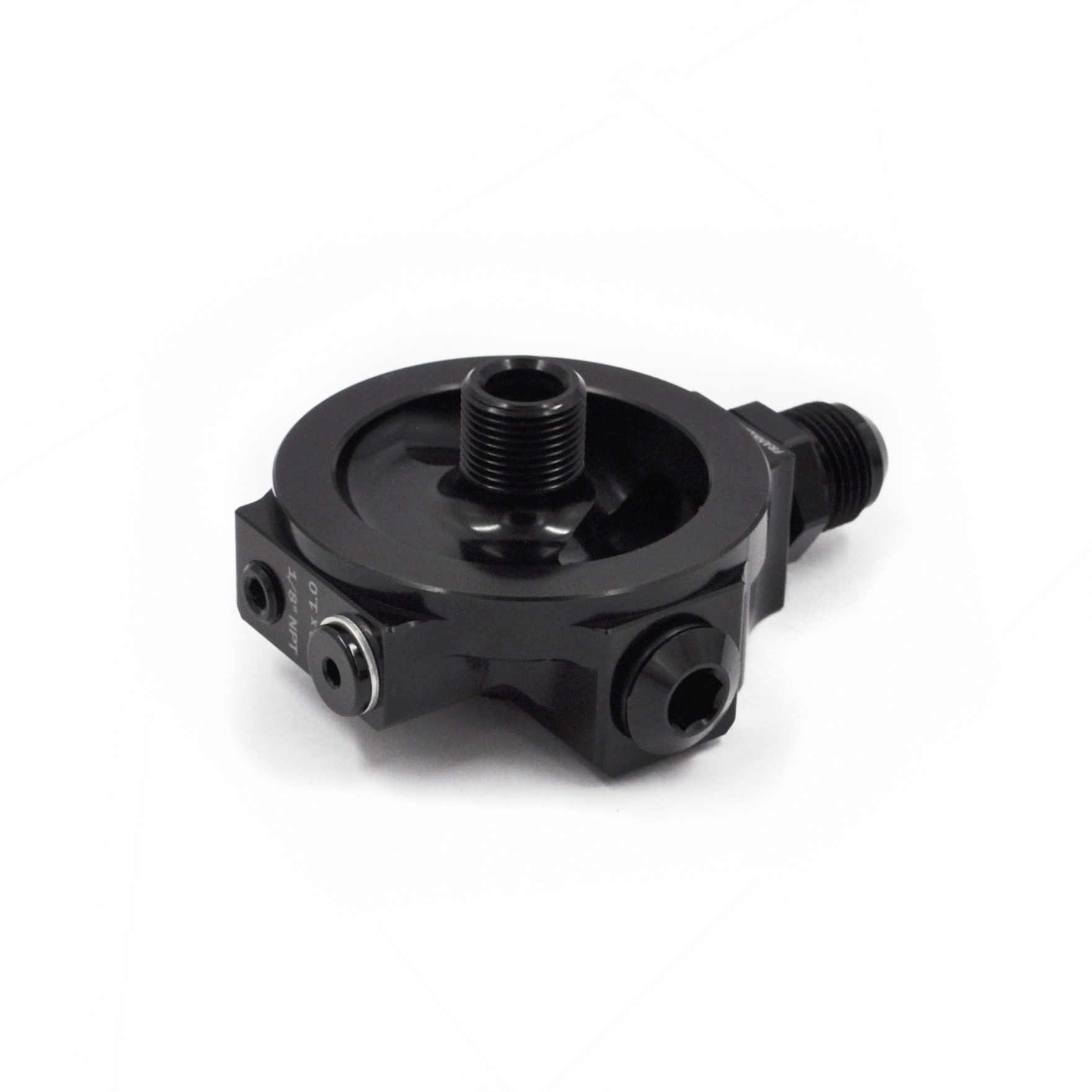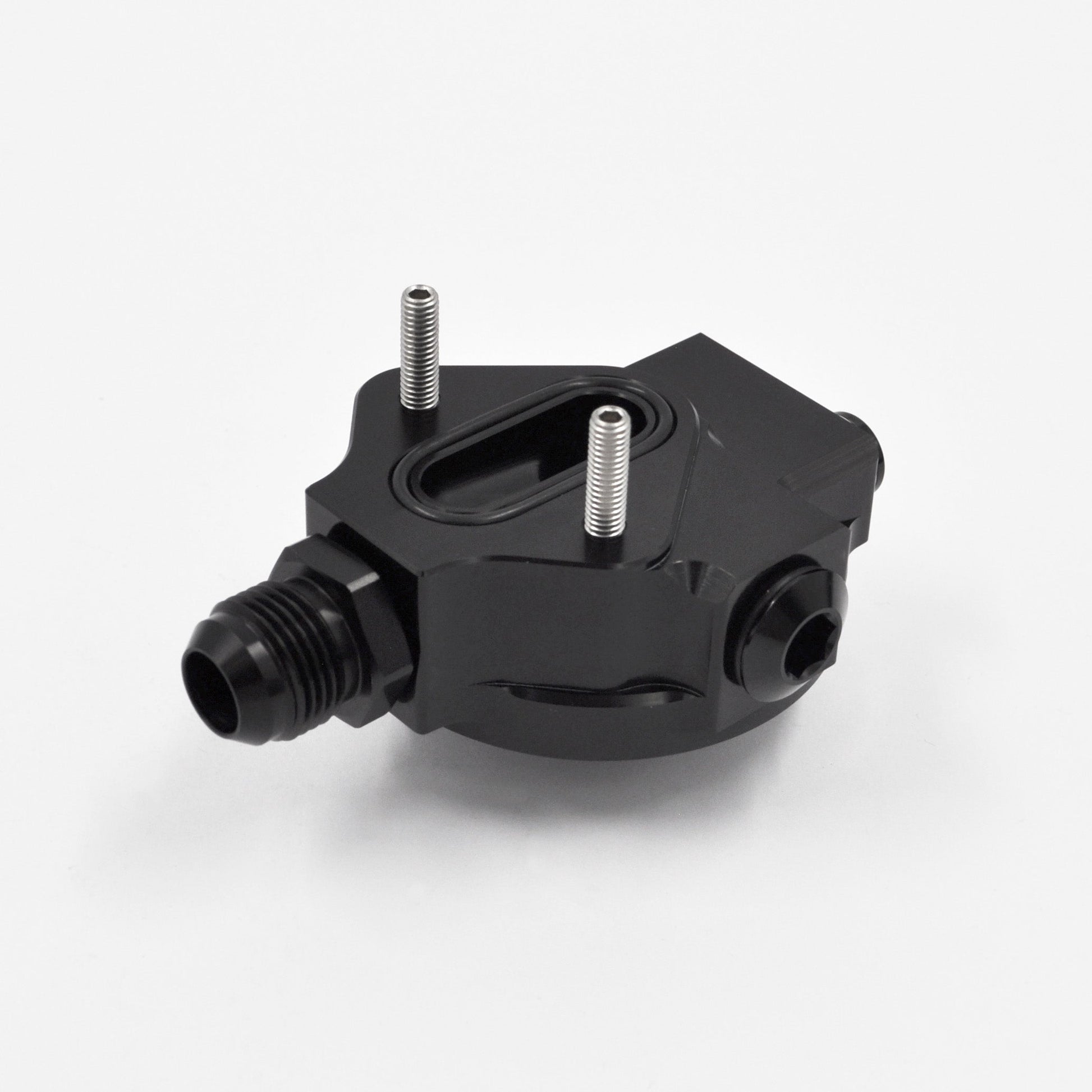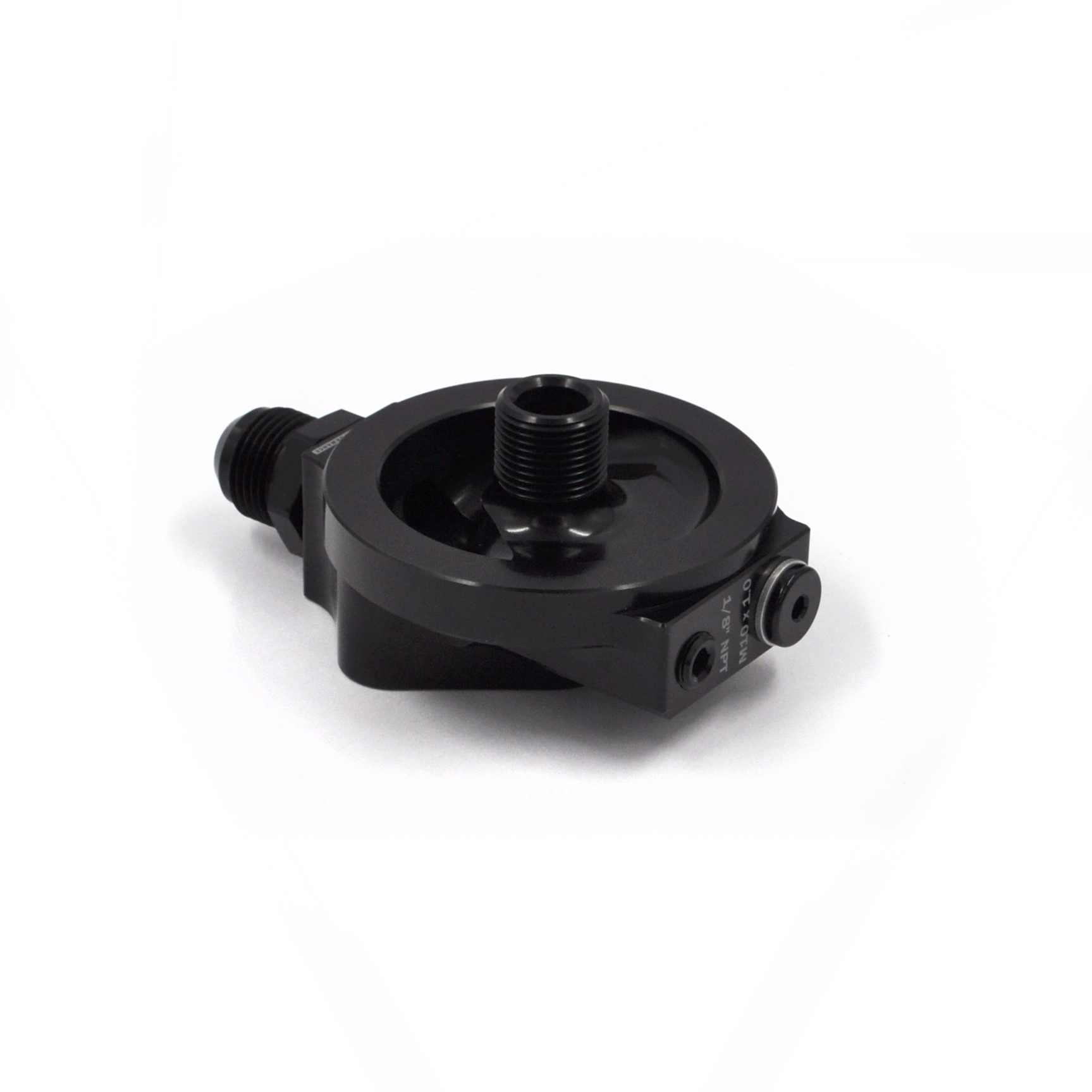 It features an 8AN ORB inlet, supplied with an 8AN ORB to 10AN adapter fitting, as well as two sensor ports—1/8" NPT and M10x1.0—and an auxiliary 8AN ORB feed port, ideal for feeding the centre bearing in custom multi-rotor applications. All sensor ports, the auxiliary feed port, and the underside engine ports are carefully arranged to ensure that oil flows only after it has been filtered, delivering accurate oil pressure readings and supplying your engine with clean, filtered oil.