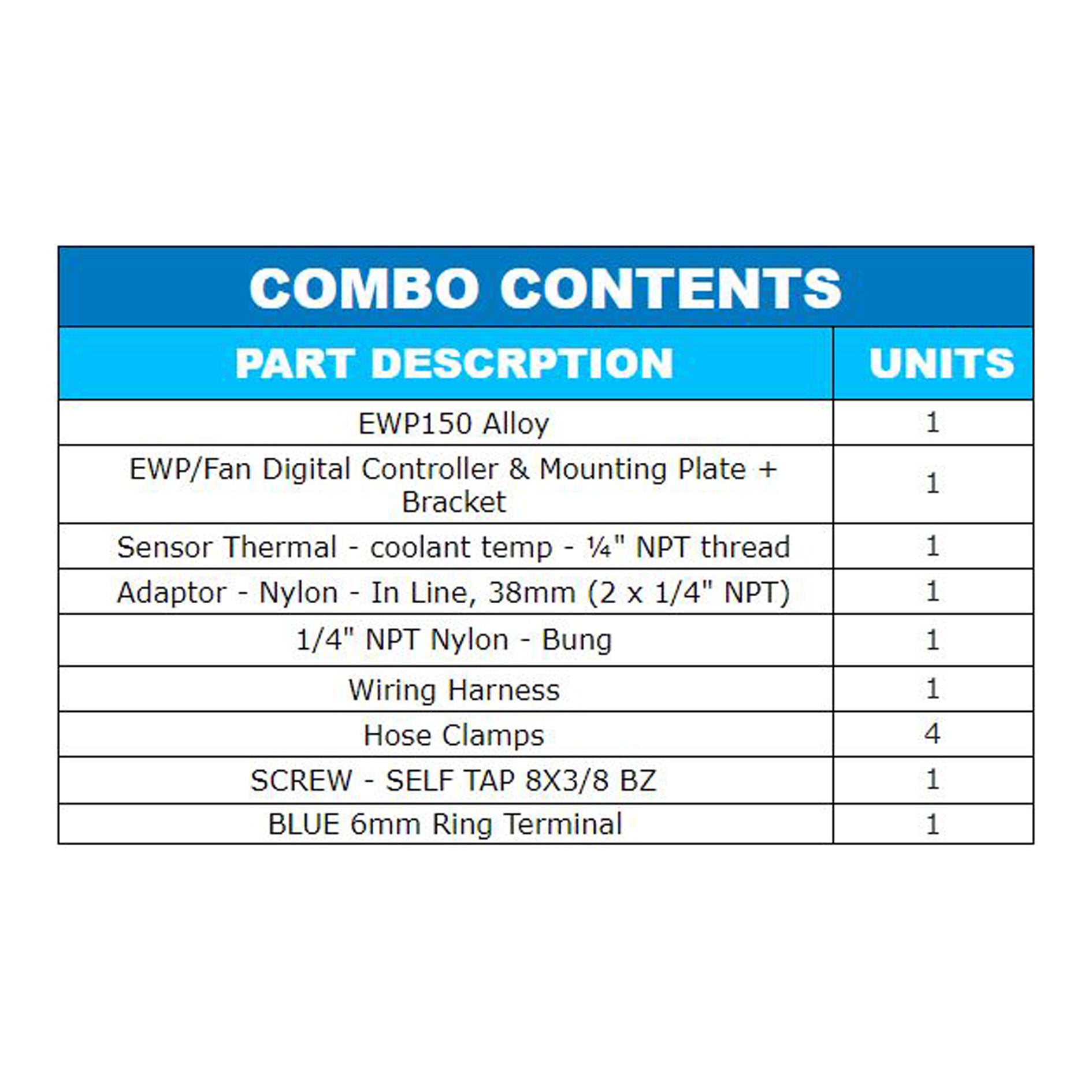 Generally, higher engine temperature will offer improved fuel efficiency and lower engine temperature more power. The LCD Digital Controller will now operate the engines electric fan automatically once the engine has reached +3c above the target temperature. A significant benefit too is the Controller allows the EWP to run on after ignition shutdown to reduce heat soak. It is recommended that engine operational temperatures be checked with manufacturer.