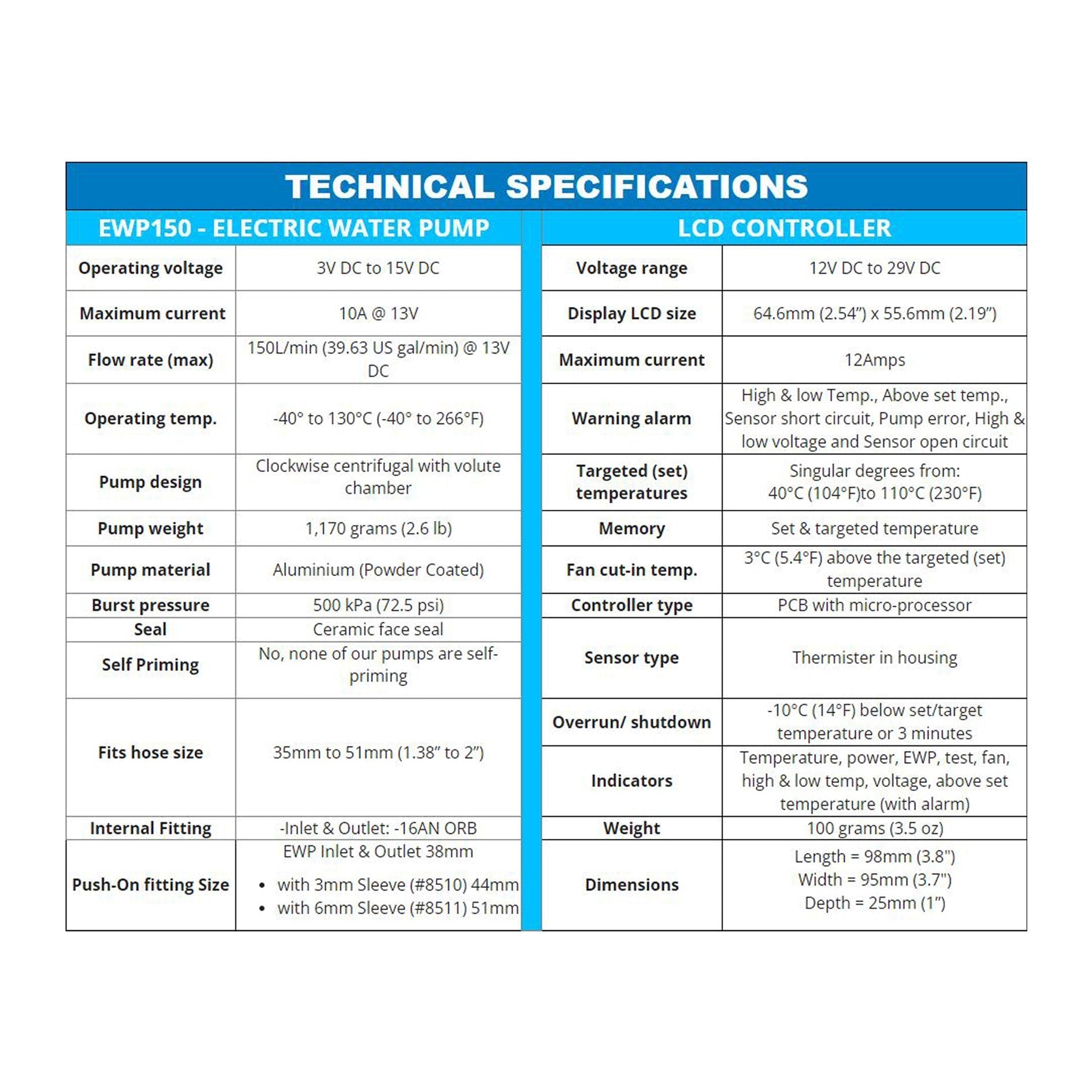 Muscle up your engine cooling system with the Davies Craig EWP 150 alloy Electric Water Pump and the LCD EWP/Fan Digital Controller.